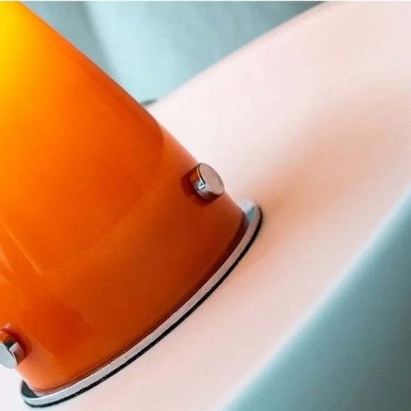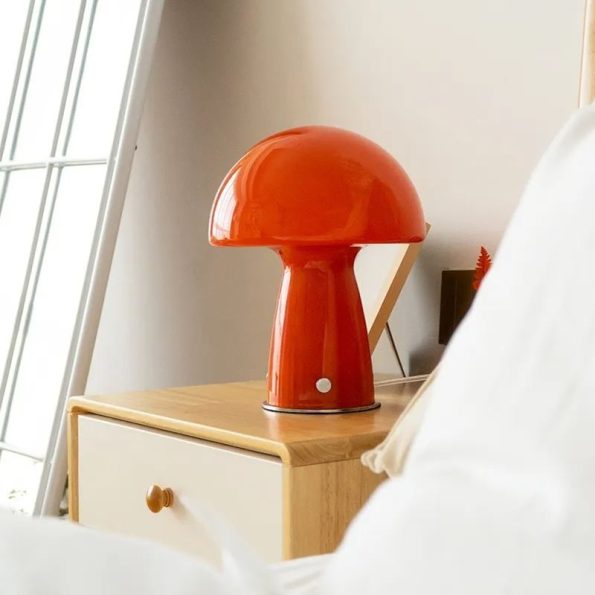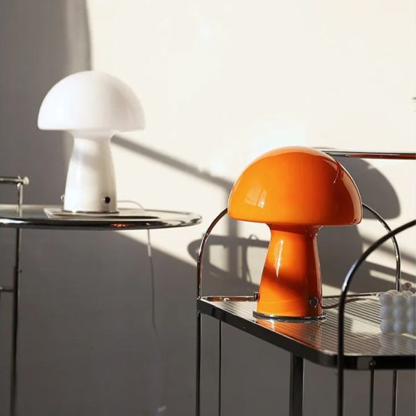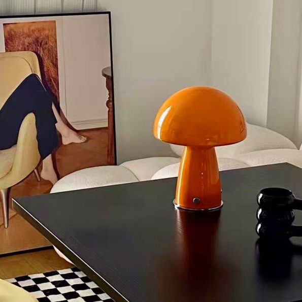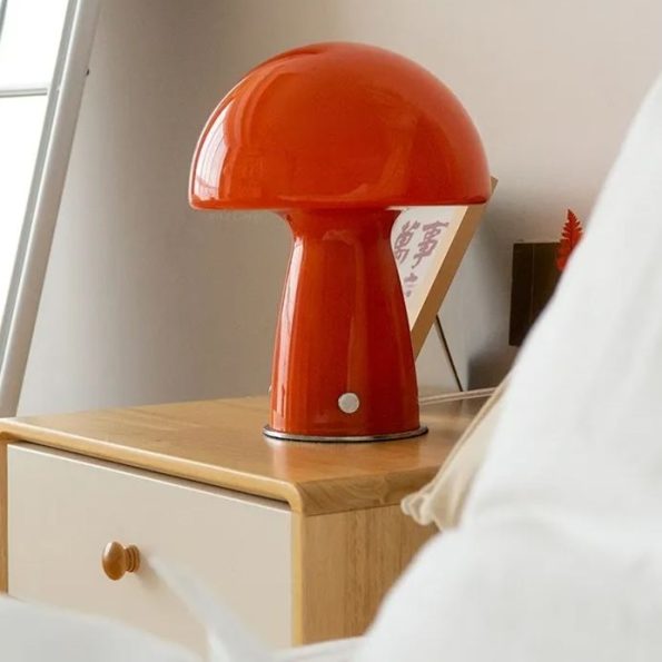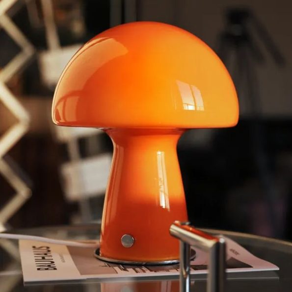 This Mushroom Table Lamp features an eye-catching, bold silhouette with a 70s retro feel. The lamp is outrageously orange, creating an attention-grabbing addition to any space. Its unique design is sure to make a statement.